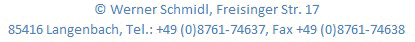 Werner Schmidl - Freisinger Str. 17, - 85416 Langenbach, - Fon +49 8761 74637, Steuer-Nr.: DE 8 11 66 44 11